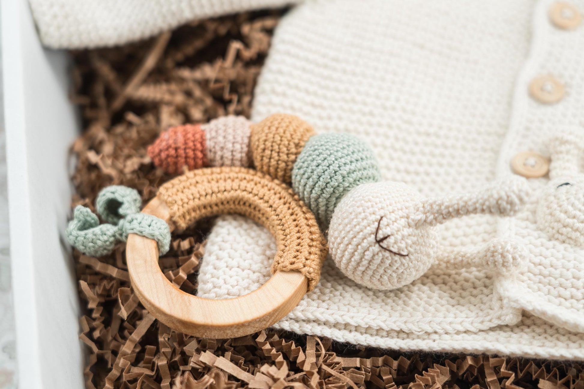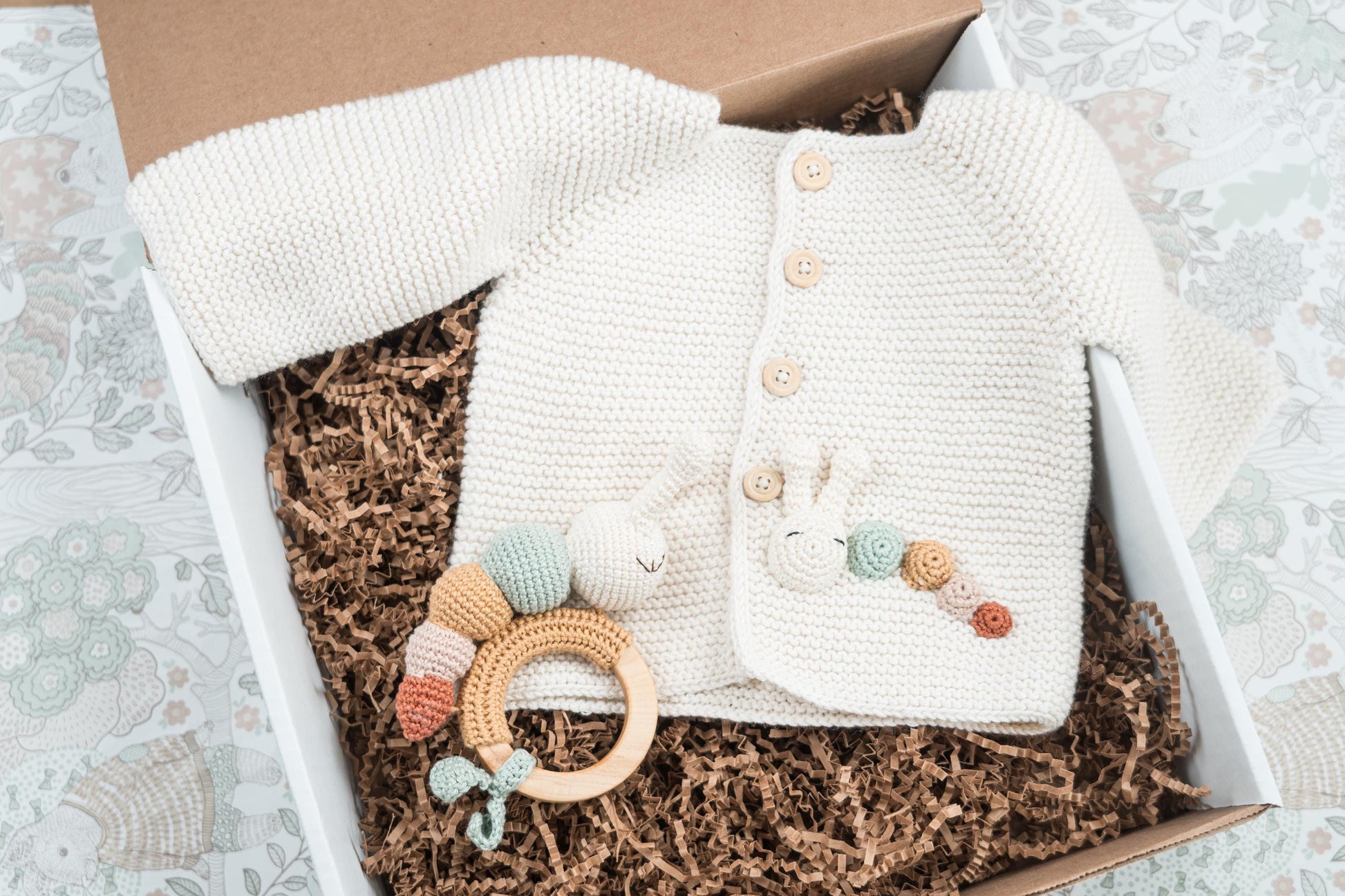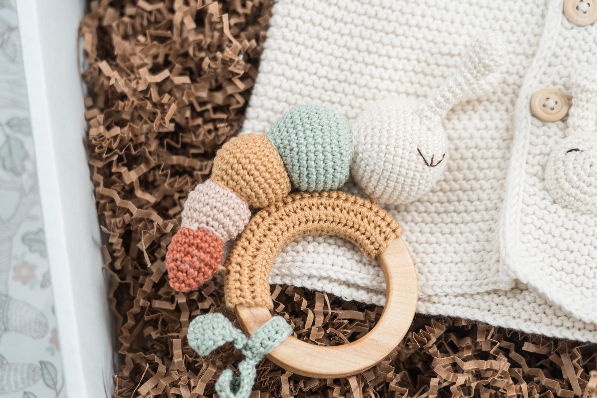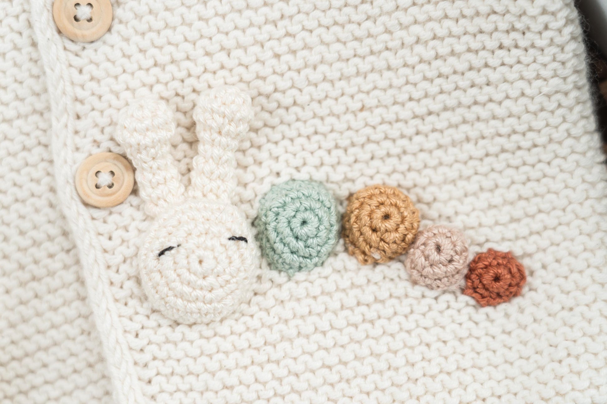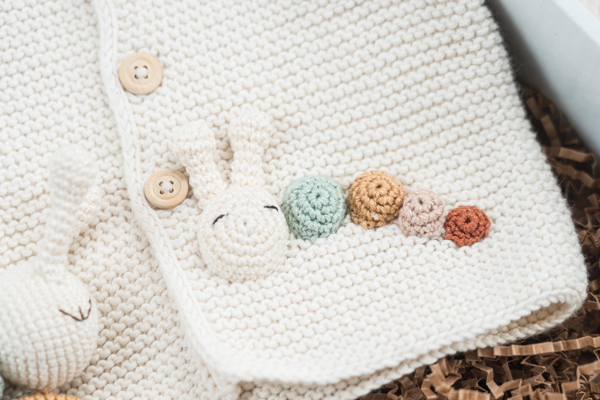 Celebrate baby's first photo shootings with this unique caterpillar rattle and matching cardigan set. Made from 100% cotton, this set is perfect for infants ages 0-3 months. Give the gift of comfort and cuteness with this Cardigan and Rattle Set.