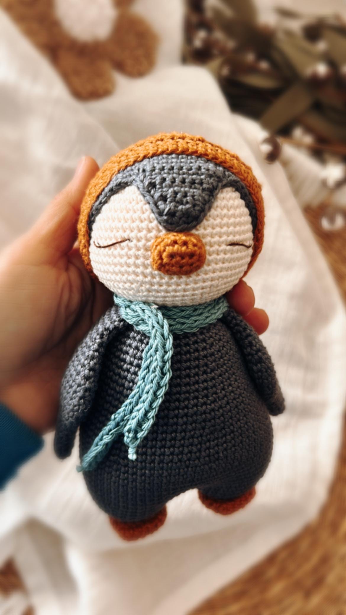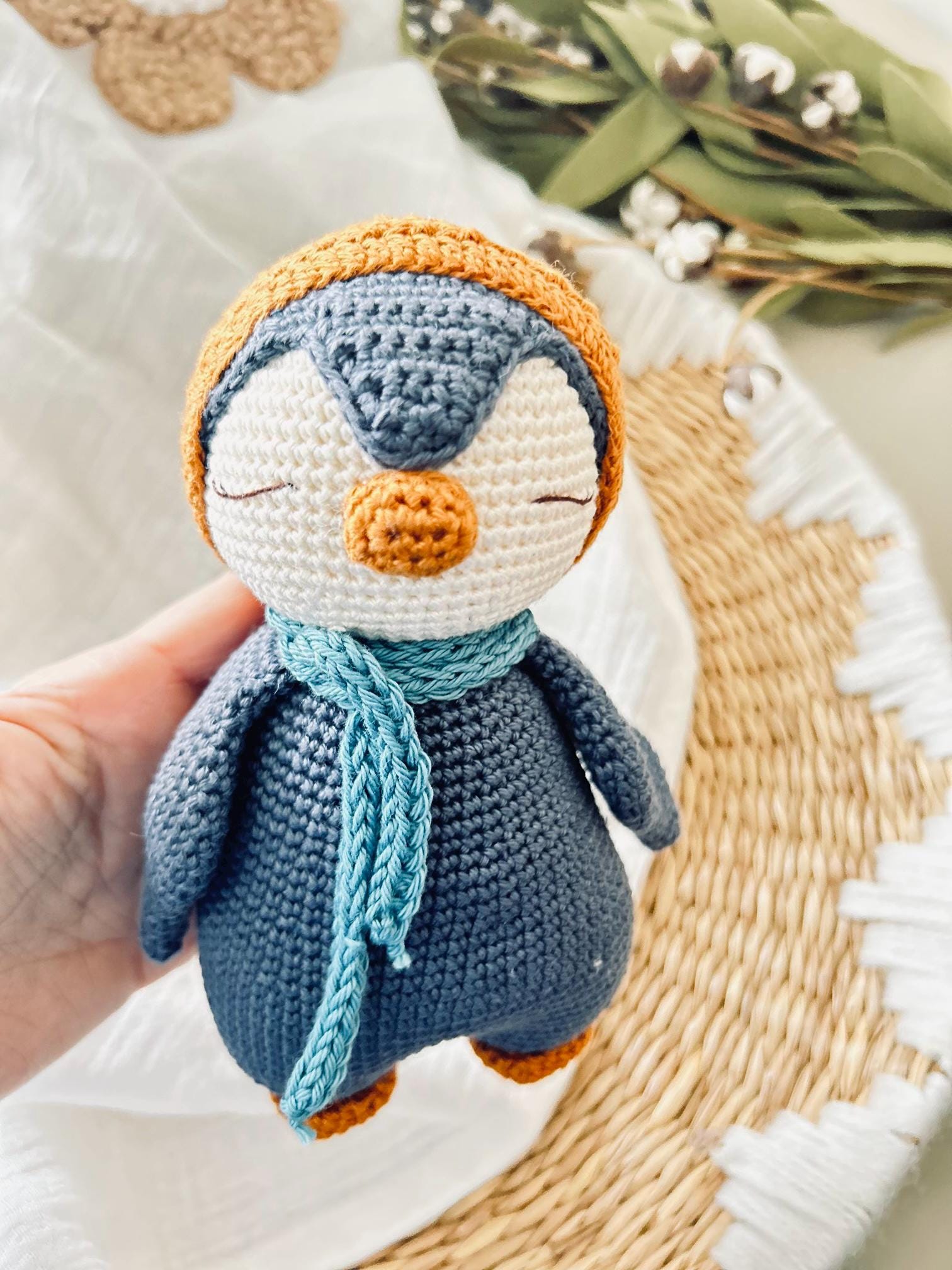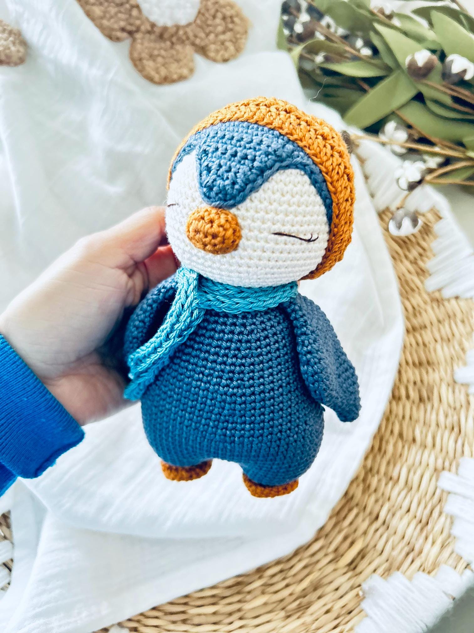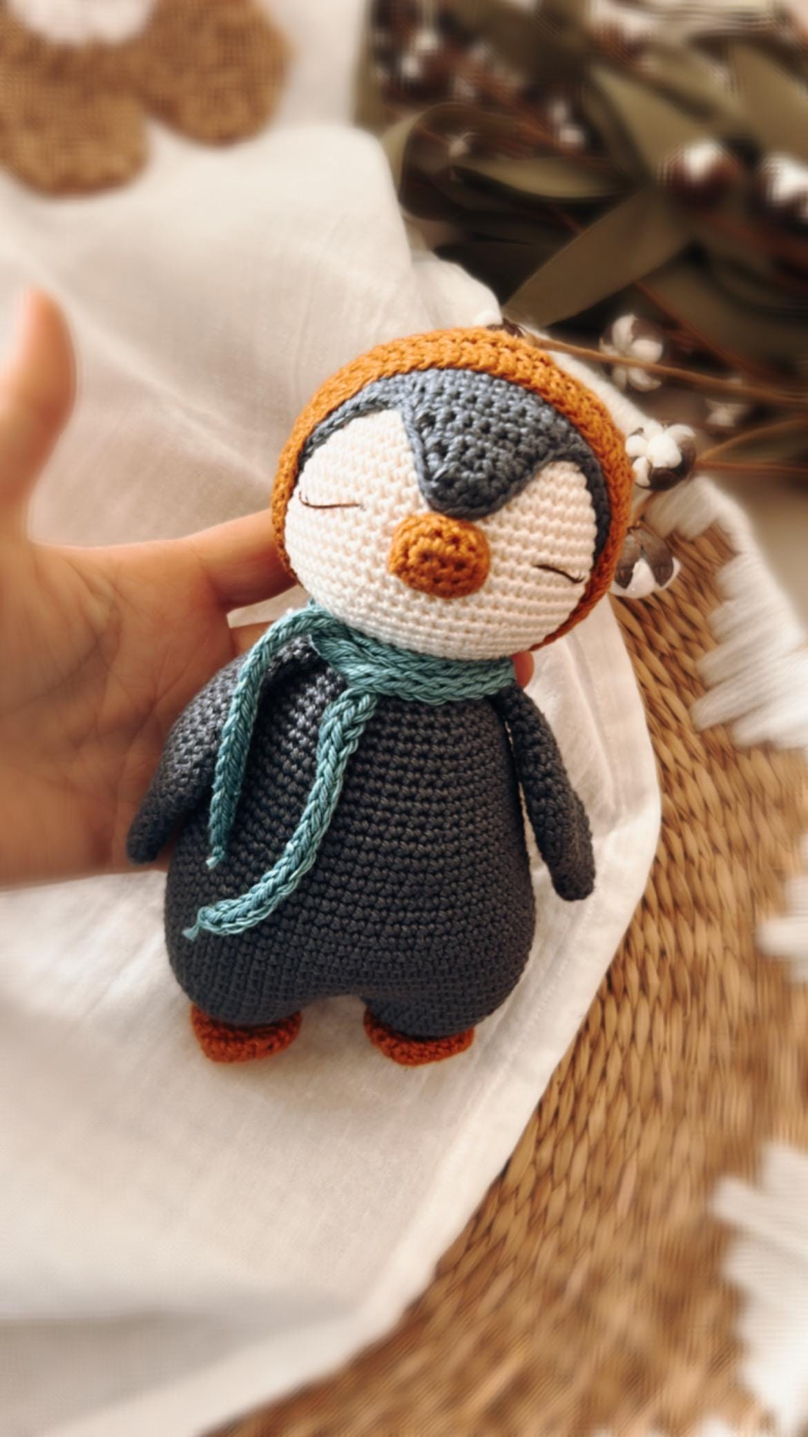The stuffed crochet penguen is crafted with attention to detail, making it the perfect size for toddlers to hold and snuggle. Its soft texture is gentle on young skin, and the durable crochet ensures it can withstand the energetic play of children. The penguen's design includes features such as a friendly face, a fluffy mane, and small ears, all of which are securely attached to ensure safety during playtime.