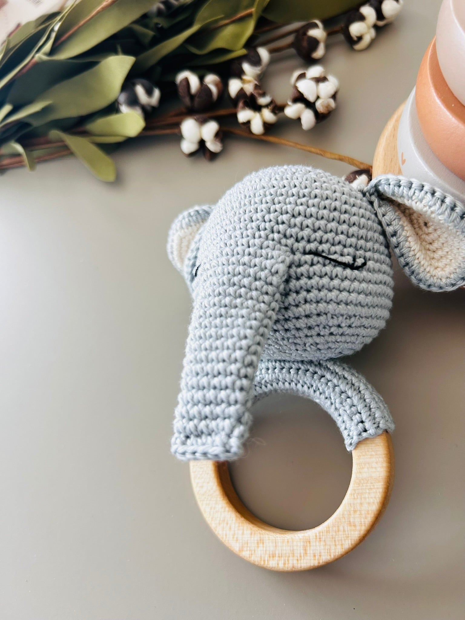 This handmade Elephant Rattle is the perfect toy for your little one. Not only is it a fun rattle, but it also comes with a teething ring to help soothe sore gums. Made with care, this rattle is sure to become a beloved companion for your child.