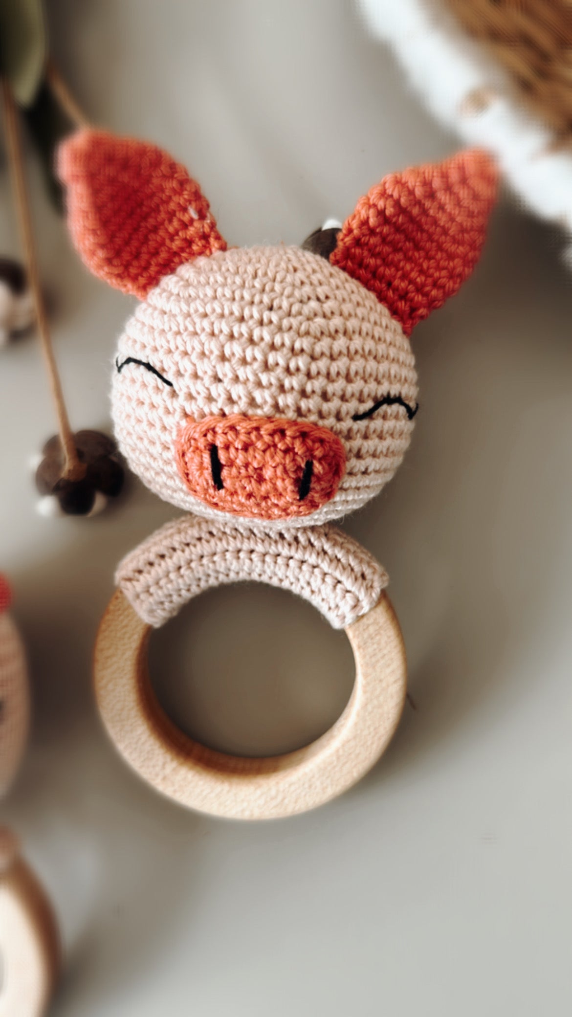 Discover our collection of baby ring rattles that are perfect for matching your little one's nursery theme or featuring their favorite animals