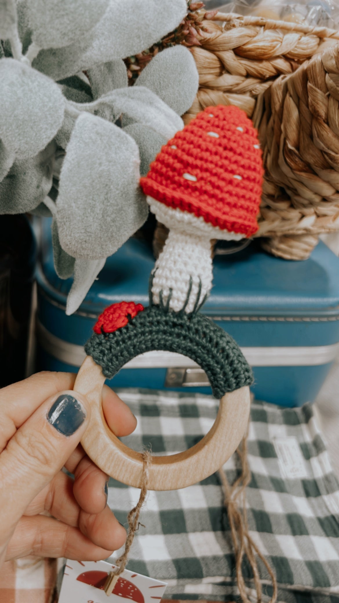 Our enchanting crochet rattle is handcrafted with love from soft, baby-friendly yarn. The charming turtle design, filled with a gentle rattle, is sure to bring joy, stimulation and comfort to your little one. The perfect size for tiny hands to grip, it's a delightful way to encourage sensory exploration and development. The matching pacifier chain is not only practical, keeping the pacifier close at hand, but it's also a stylish accessory that complements the rattle. Both pieces are created with the highest standard of craftsmanship, ensuring durability and longevity.