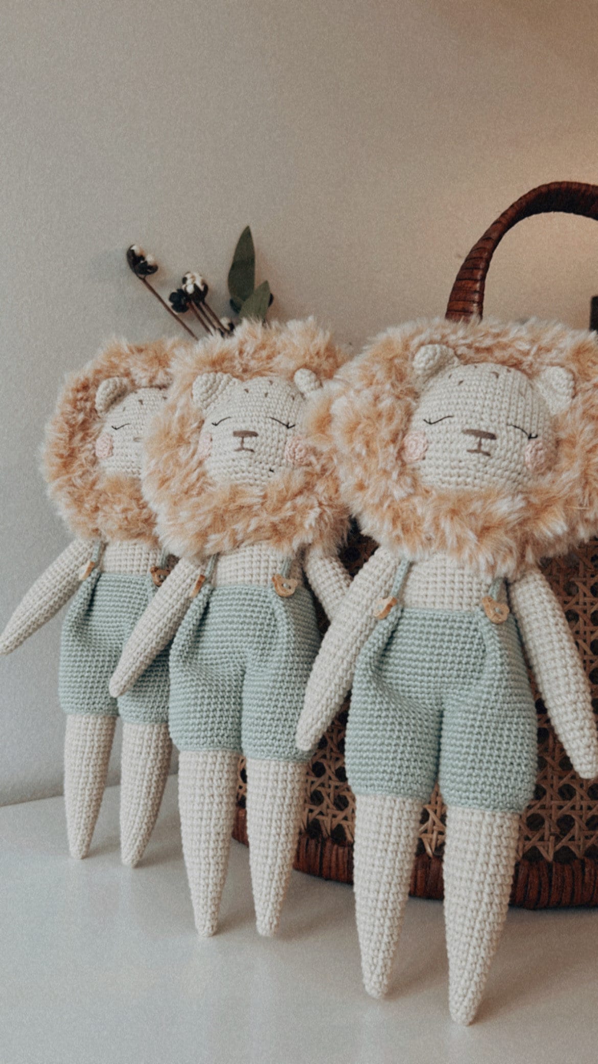 Looking for a special gift for a baby boy? How about a crochet lion? This adorable toy is perfect for a woodland themed baby room and is made from soft cotton yarn. It measures 27-30 cm in length and is not only a great toy for kids but also a wonderful sleep companion.