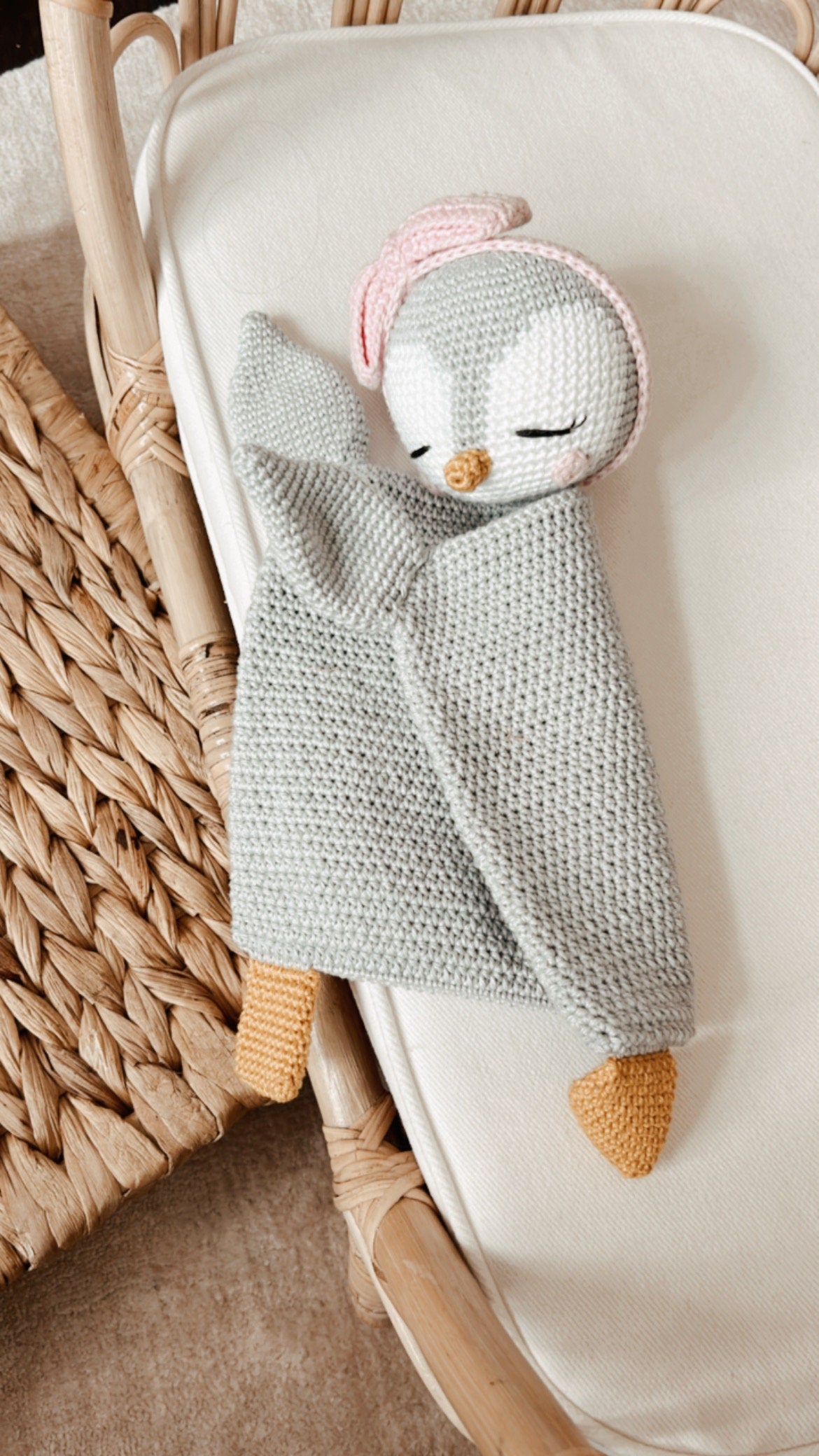 Gift for Newborn, Heirloom Crochet Lovey Security Blanket in Penguin