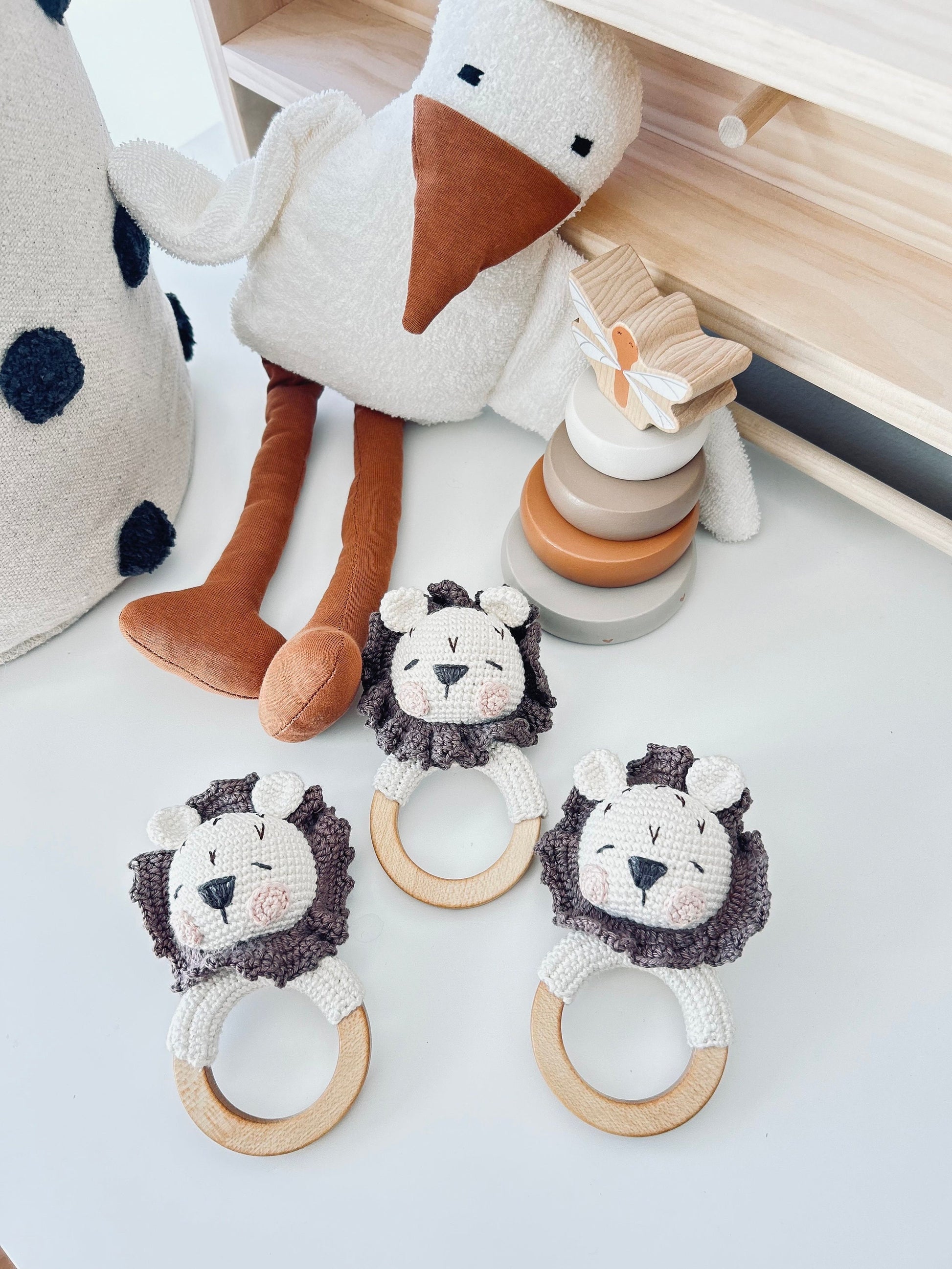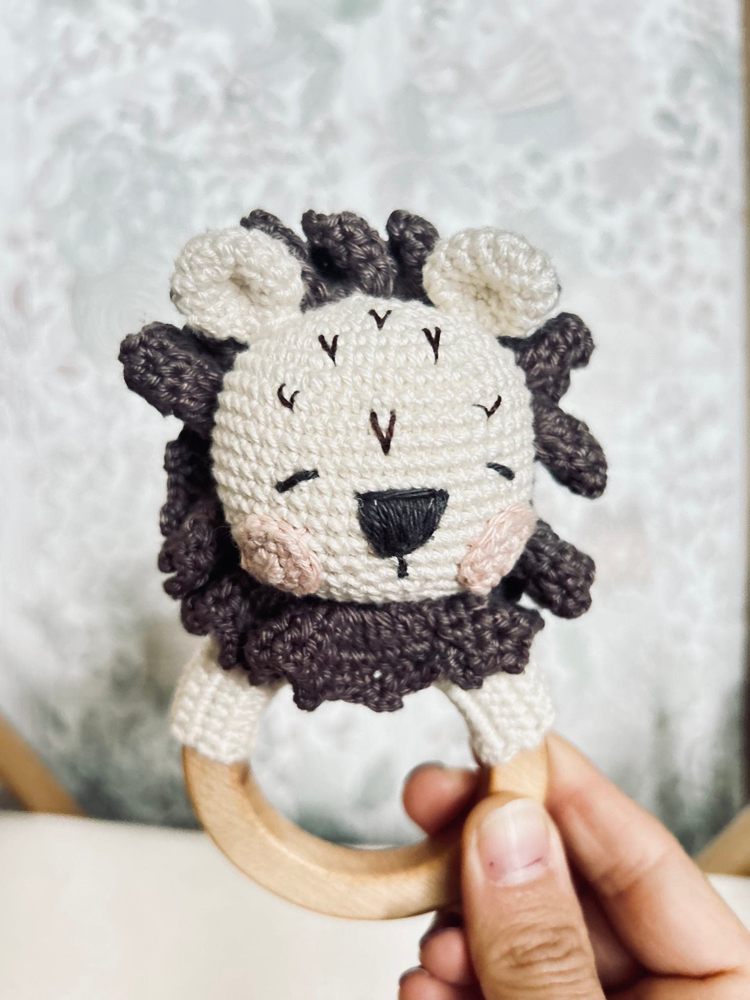 Gift for Newborn, Lion Rattle Crochet, Crochet Rattle for Babies, Rattle Teether Lion,