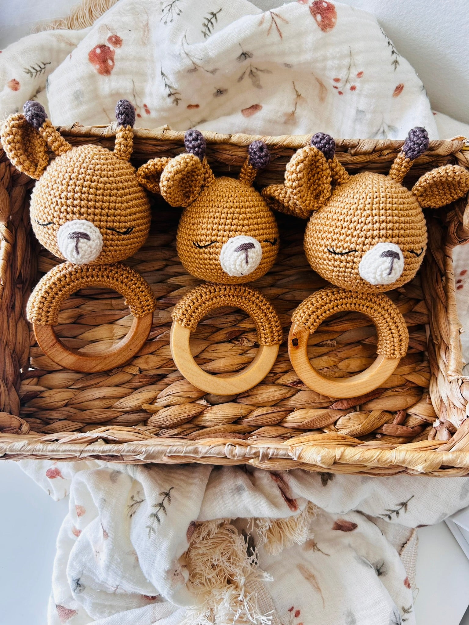 Discover our collection of baby ring rattles that are perfect for matching your little one's nursery theme or featuring their favorite animals