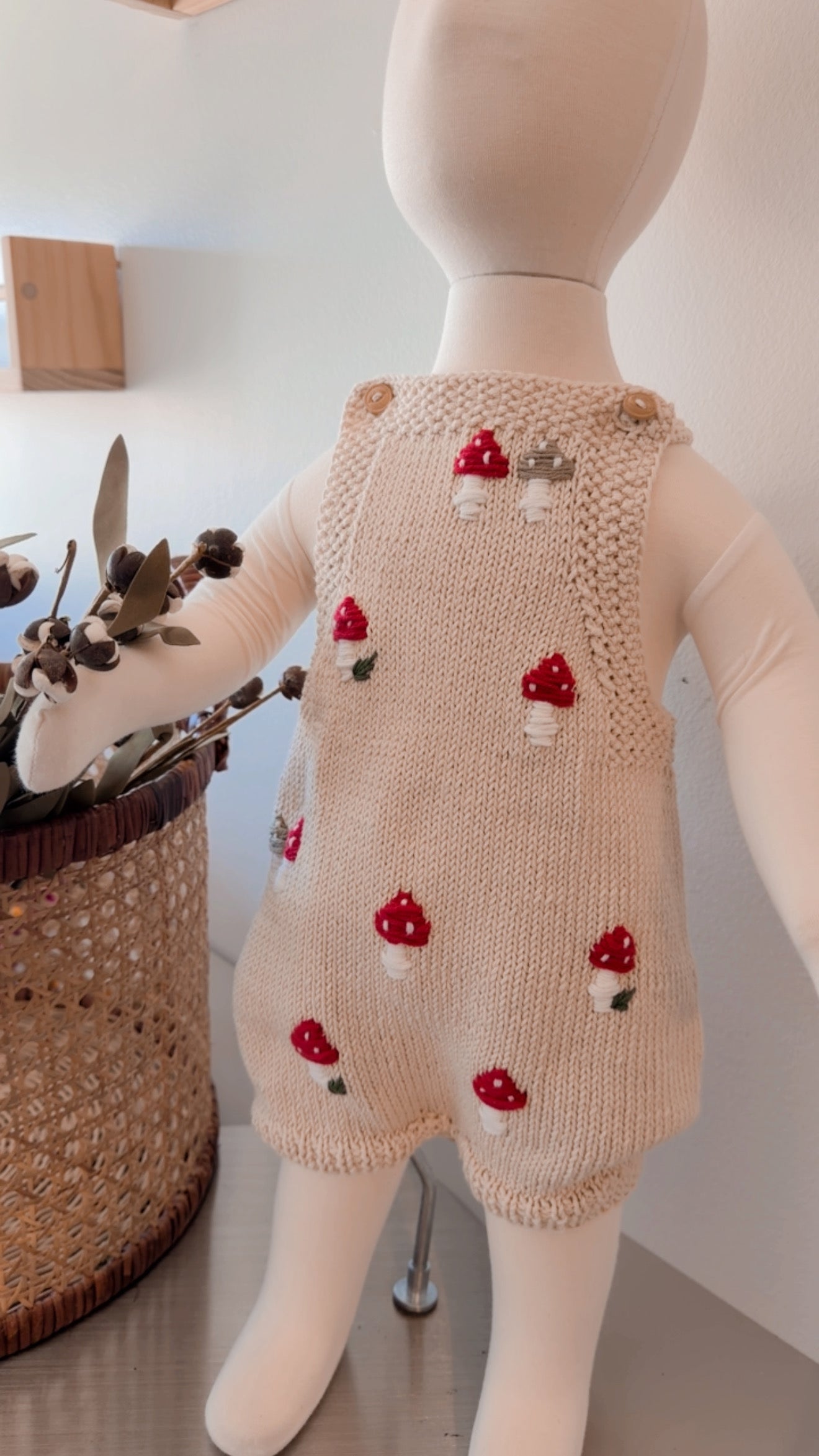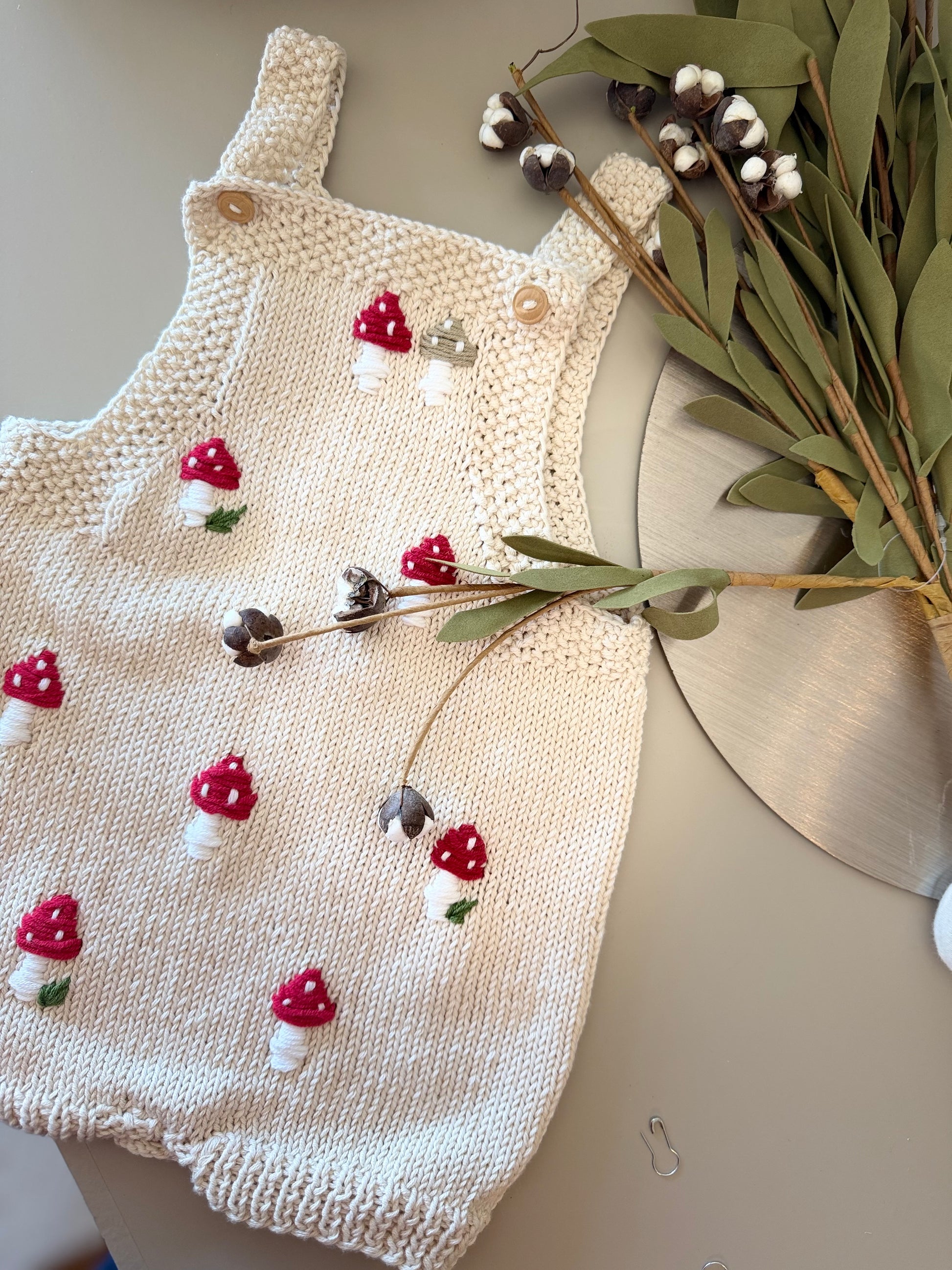 Snuggle your little one in this adorable handmade Mushroom Romper! Crafted with love and care, this handknit romper features charming mushroom embroidery for a touch of whimsy. Keep your bundle of joy cozy and cute in this unique, one-of-a-kind piece. Perfect for ages 0-6
