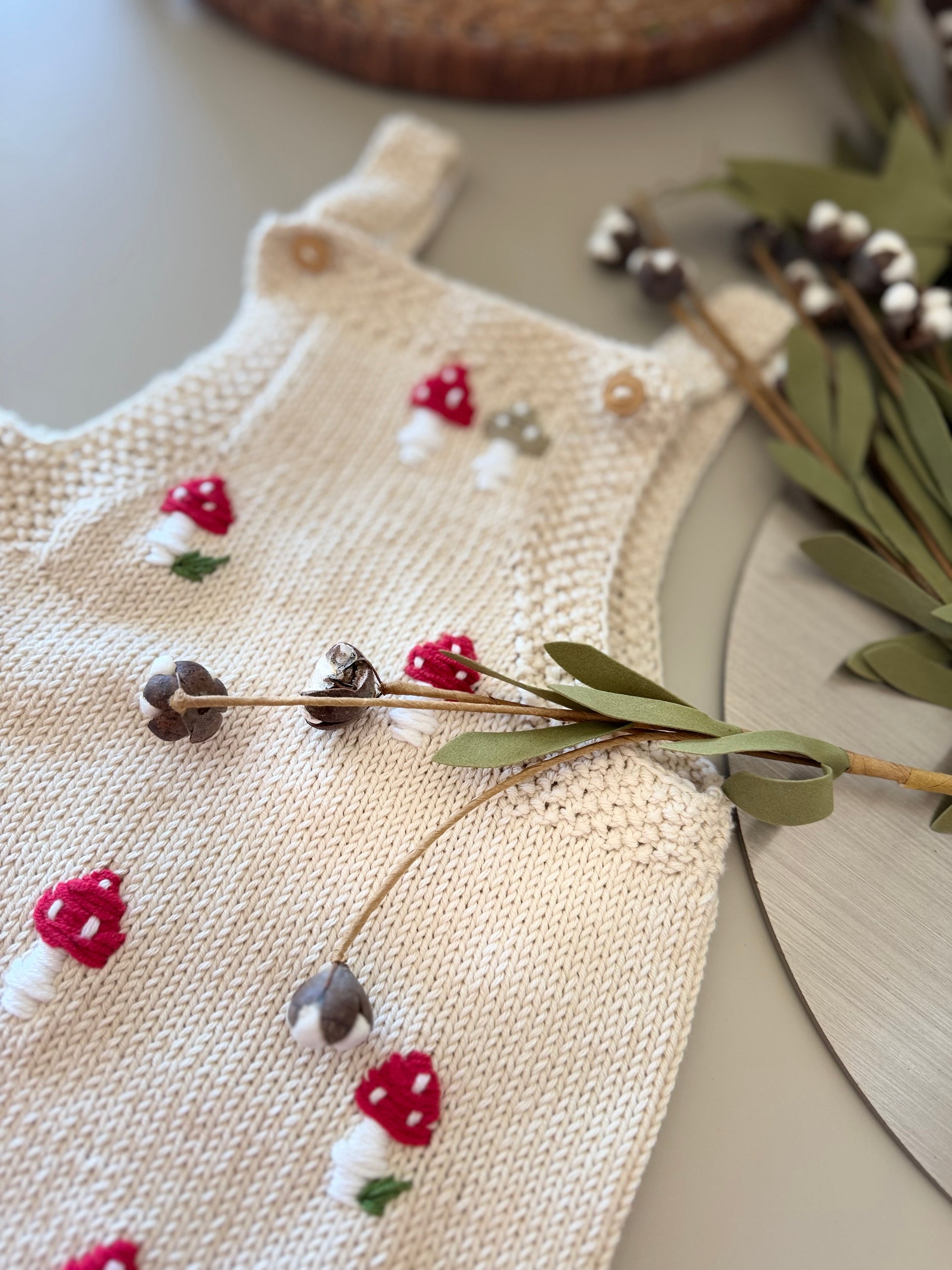 Handknit Mushroom Outfit 3-6M