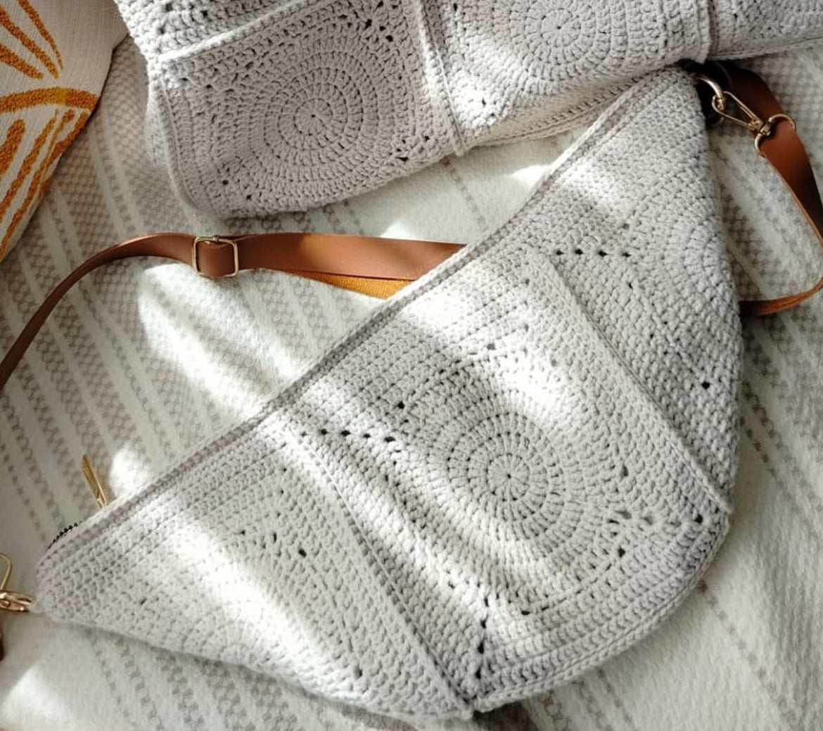 Handmade Crochet Crossbody Bag – Boho Chic with Leather Strap- Unique Gift for Mom