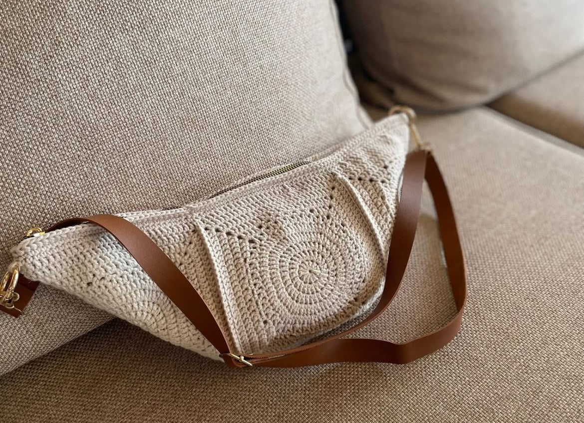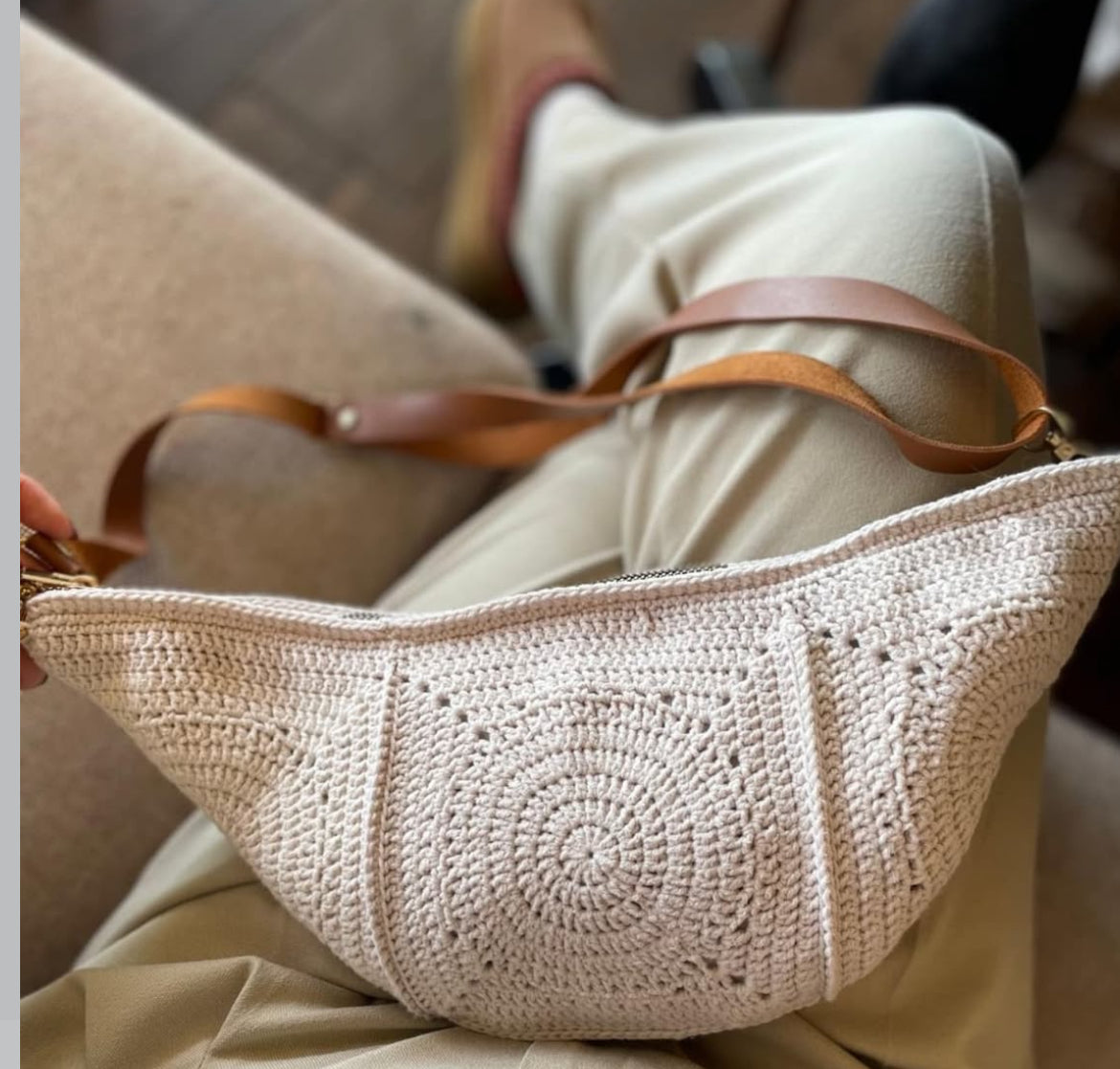 Elevate your everyday style with this beautifully handcrafted crochet crossbody bag. Featuring intricate circular crochet patterns in a natural beige tone, it blends artisanal charm with modern practicality. The sturdy brown leather strap adds a touch of elegance while ensuring durability and comfort for all-day wear. Perfect for casual outings, beach days, or pairing with your favorite boho-inspired outfit, this bag is as versatile as it is unique. Finished with a secure zipper closure to keep your essentials safe, it’s the perfect balance of fashion and function.