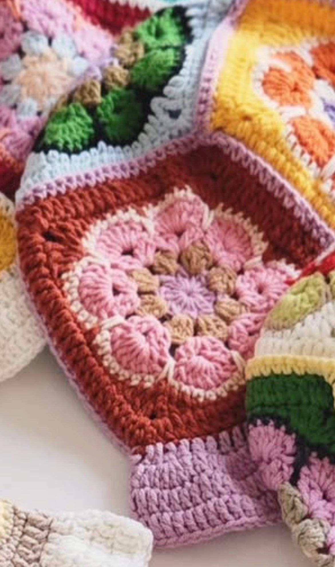 Handmade Crochet Flower Beanie – 70s Granny Square Hippie Hat-Mom Group