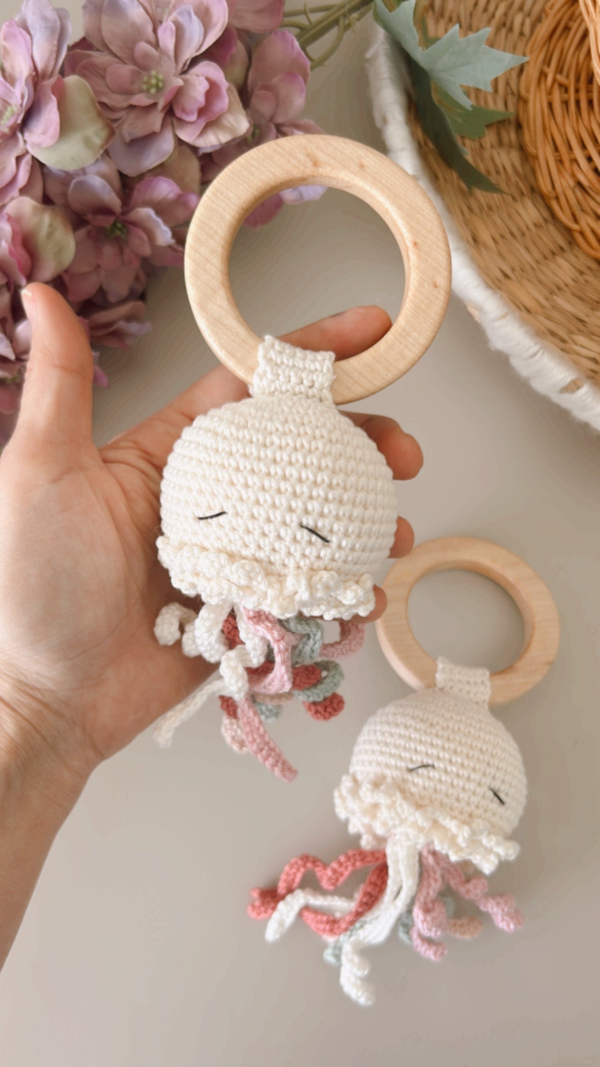 Discover our collection of baby ring rattles that are perfect for matching your little one's nursery theme or featuring their favorite animals