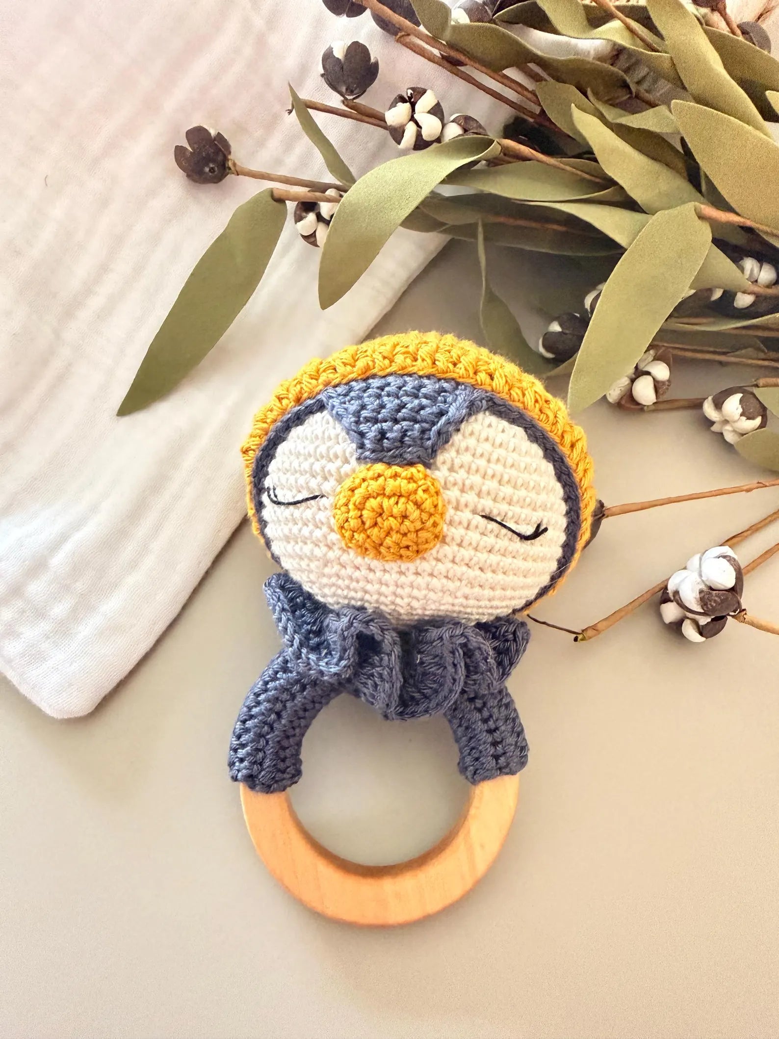 Handmade baby rattle makes a lovely present for new parents or first-time moms. It comes in a white cotton bag for easy gifting and is sure to impress any mom-to-be with its unique handmade touch. Enjoy a hassle-free online gift shopping experience by including a complimentary gift tag with your order and providing us with the recipient's and sender's names. We'll take care of writing them for you and sending the gift without a receipt.
